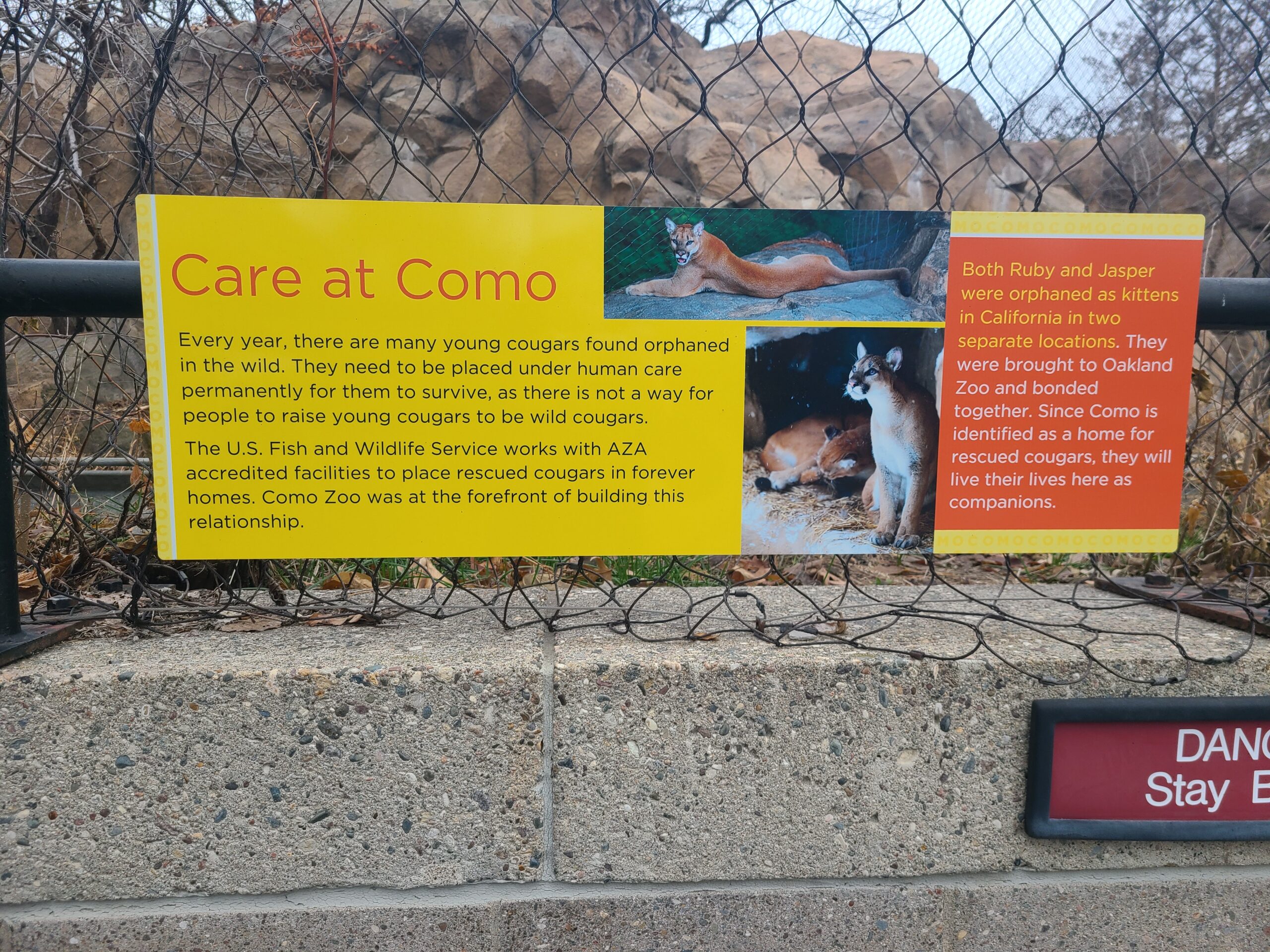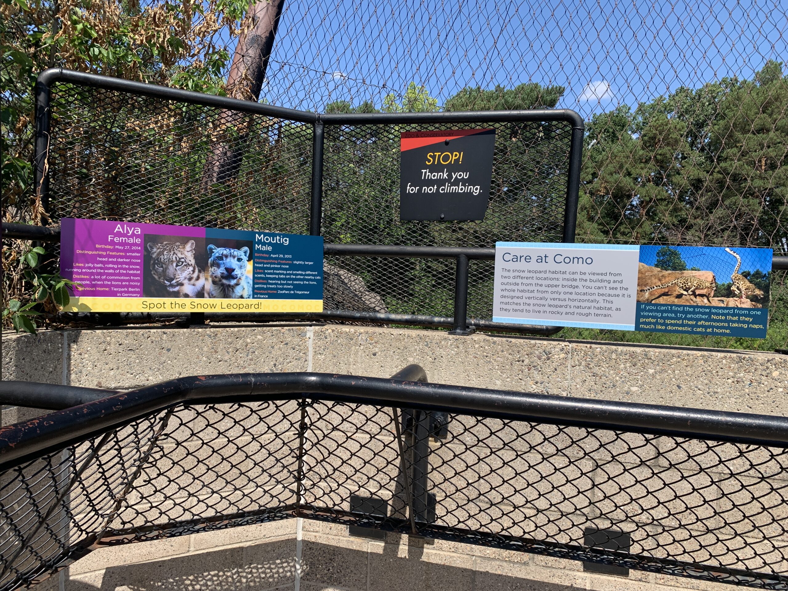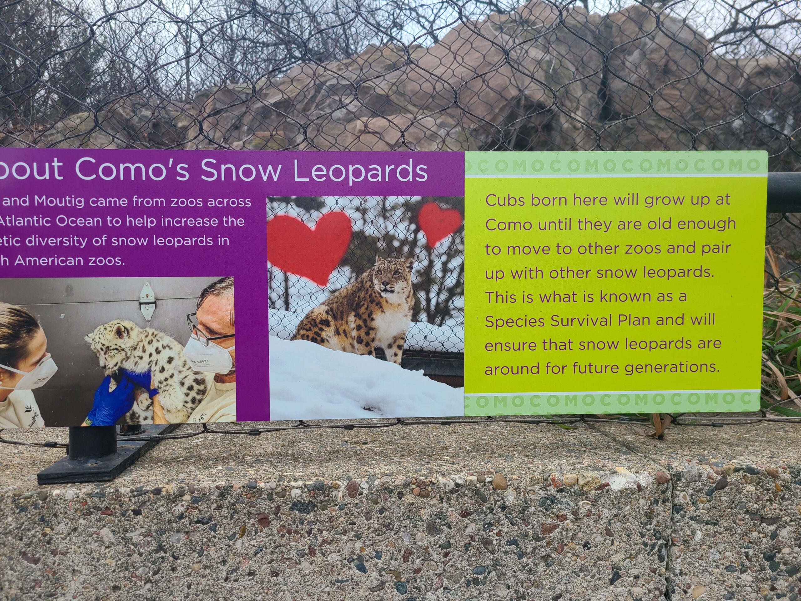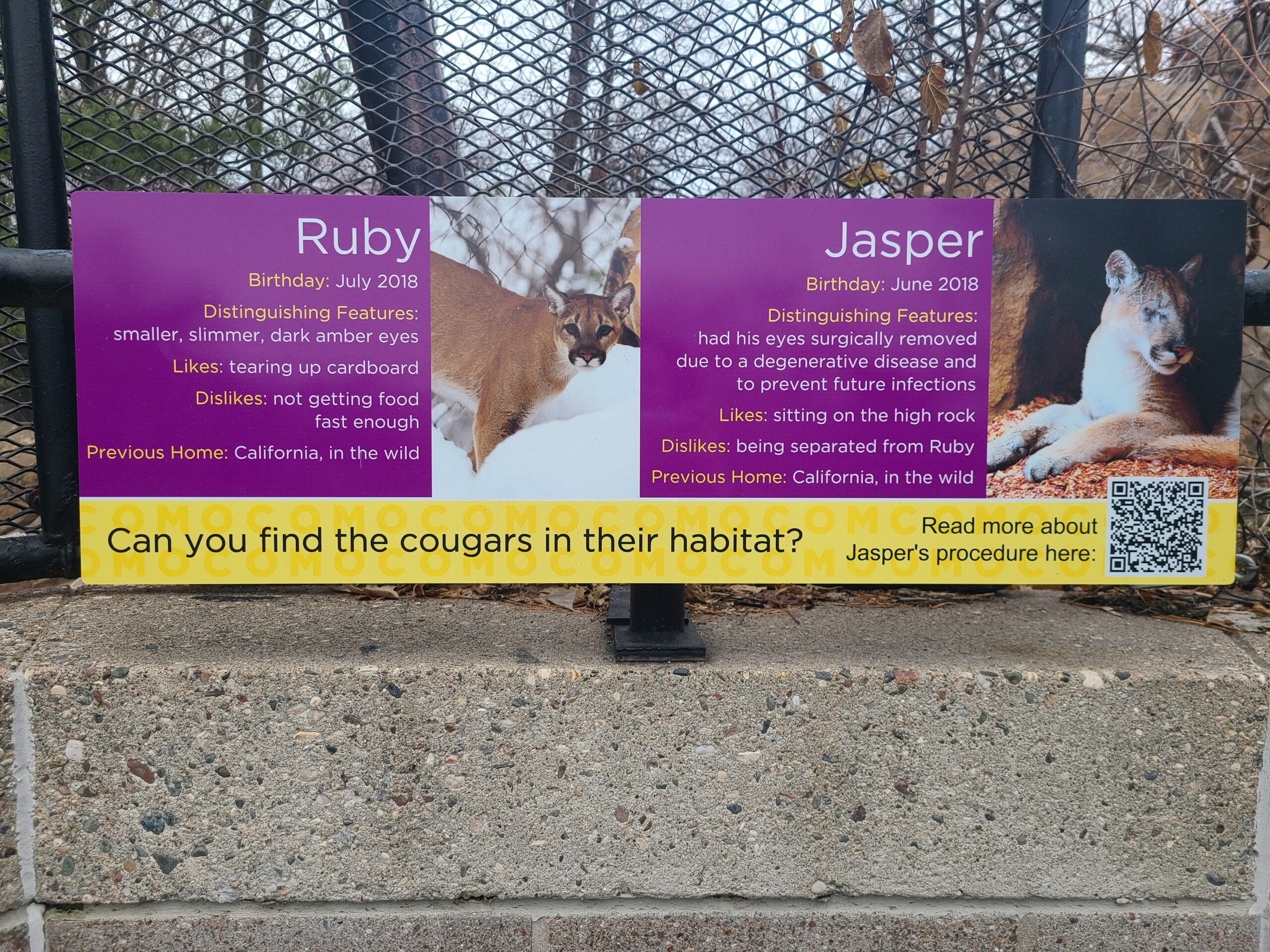 CPZC: African Lion sign CPZC: Care at Como sign CPZC: Hide and Seek Champions sign CPZC: Snow Leopards sign CPZC: Snow Leopard Exhibit viewing CPZC: All snow leopard signs CPZC: Tiger signCPZC: Mtn lion care at Como CPZC: Mtn lion signCPZC: New wolf sign1CPZC: New wolf sign2CPZC: Signage observation template RRZ: Raven workflow RRZ: Lynx workflow RRZ: Bison workflow RRZ: Data summary